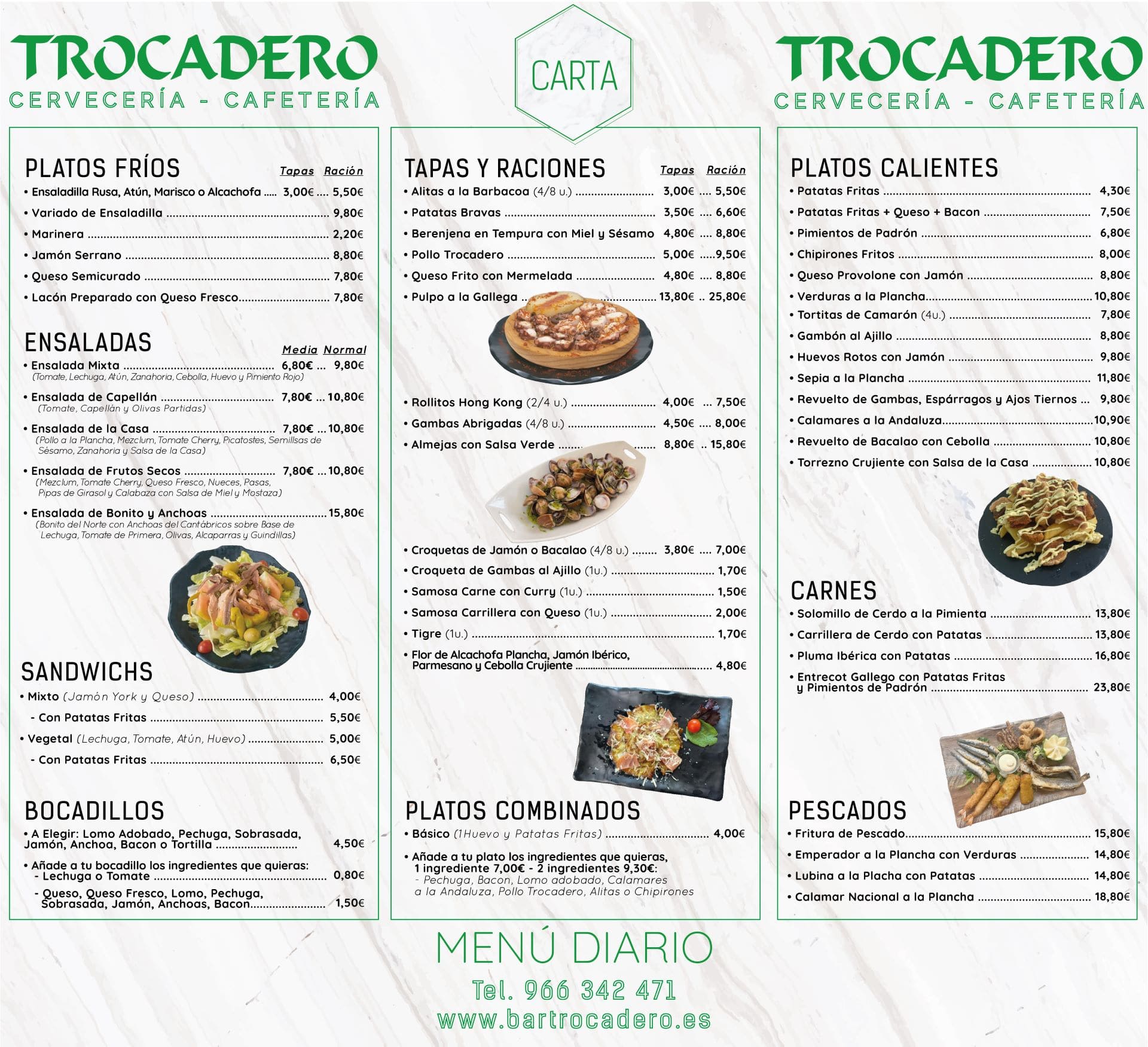 Incluye Pan, una Bebida, Ensalada y Postre o Café.